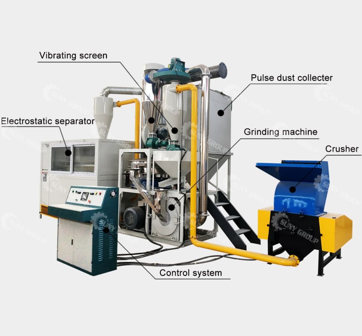 - Electrostatic Separator: Separates aluminum from plastic with high precision.